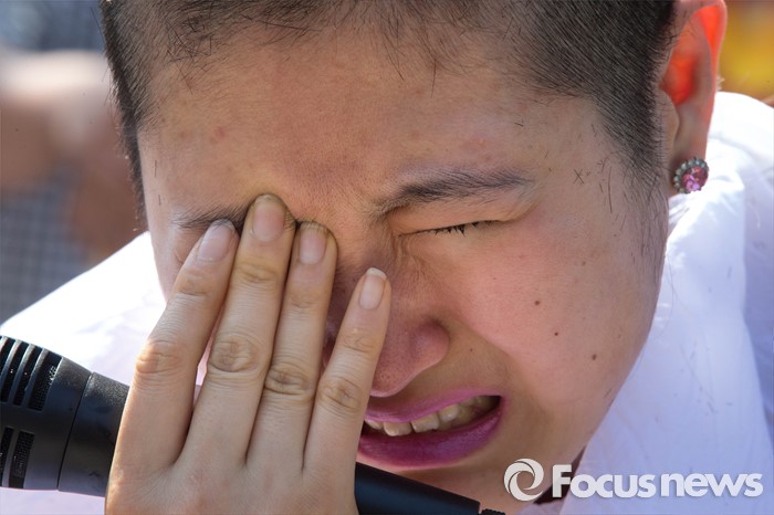 | △ 삭발식 후 기자회견에서 흐느끼는 황지나씨 |
