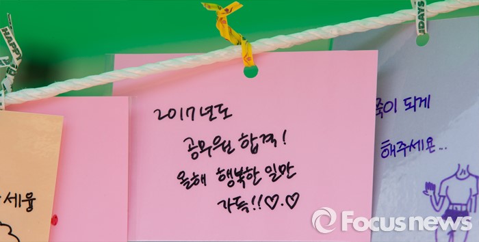 (대전=포커스뉴스) 대학축제가 한창인 11일 오전 대전 대덕구 한남대학교에서 학생들이 소원나무에 적어 놓은 소원메모가 보이고 있다.
