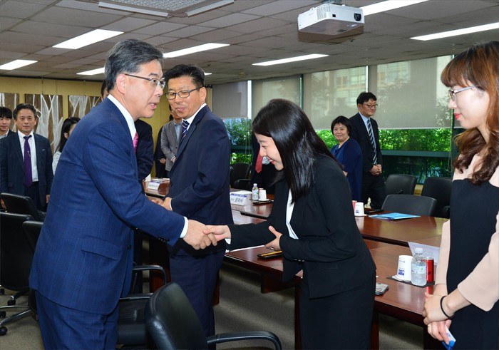 (서울=포커스뉴스) 송언석 기획재정부 차관이 직업훈련 관련 현장 점검 차 11일 서울시 서초구 소재 직업능력 개발 훈련 시설 비트교육센터를 방문해 직업훈련생과 악수하며 인사를 나누고 있다. <사진제공=기획재정부>