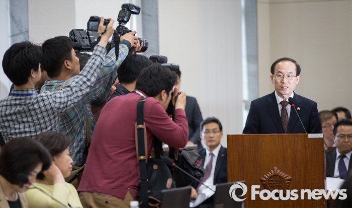 (서울=포커스뉴스) 윤성규 환경부 장관이 11일 오후 서울 여의도 국회에서 열린 환경노동위원회 전체회의에 참석해 가습기 살균제 사태와 관련 현안 보고를 하고 있다.