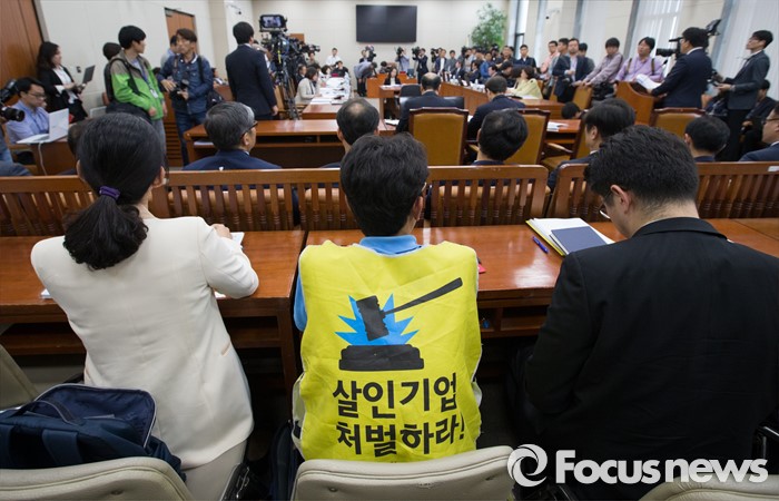 (서울=포커스뉴스) 11일 오후 서울 여의도 국회에서 가습기 살균제 관련 현안보고 등을 위해 열린 환경노동위원회 전체회의에 참석한 안성우 가습기 살균제 피해 유가족 대표가 회의를 방청하고 있다.