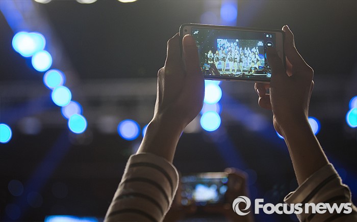 (서울=포커스뉴스) 11일 오후 서울 광진구 세종대학교에서 열린 '2016 세종대학교 축제'에서 학생들이 걸그룹 나인뮤지스의 무대를 촬영하고 있다.