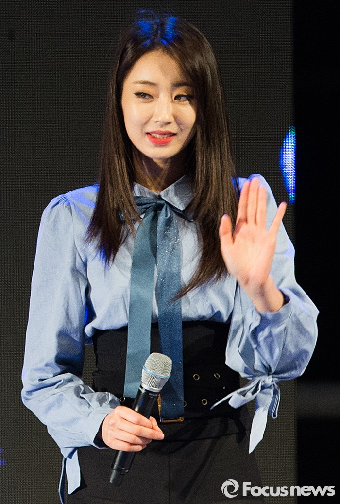 (서울=포커스뉴스) 11일 오후 서울 광진구 세종대학교에서 열린 '2016 세종대학교 축제'에서 걸그룹 나인뮤지스 멤버 경리가 인사하고 있다.