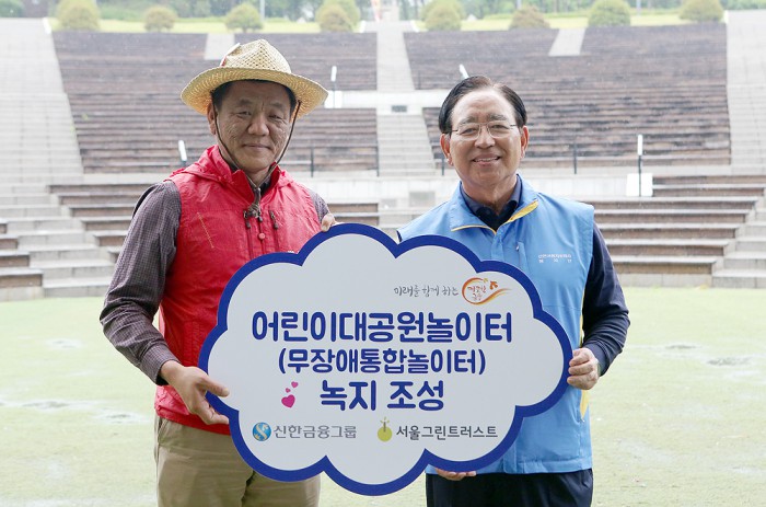 12일 신한금융그룹은 지난 10일 서울 광진구 능동에 위치한 무장애 통합놀이터 녹지 조성 봉사활동을 실시했다고 밝혔다.