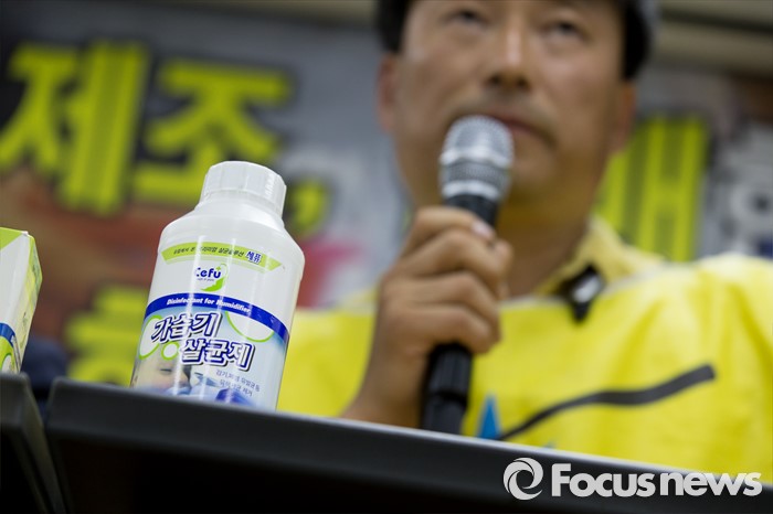 (서울=포커스뉴스) 12일 오전 서울 중구 환경재단 레이첼카슨홀에서 최예용 환경보건시민센터 소장이 가습기 살균제 제조사 세퓨에 원료를 공급한 덴마크 케톡스(KeTox)사 항의 방문 결과와 현지 조사기록을 발표하고 있다.