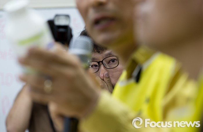 (서울=포커스뉴스) 12일 오전 서울 중구 환경재단 레이첼카슨홀에서 최예용 환경보건시민센터 소장이 가습기 살균제 제조사 세퓨에 원료를 공급한 덴마크 케톡스(KeTox)사 항의 방문 결과와 현지 조사기록 결과 발표를 지켜보고 있다.