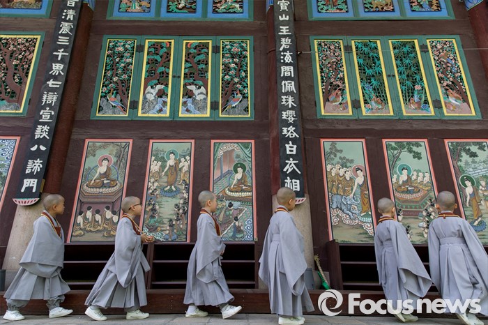 (서울=포커스뉴스) 석가탄신일을 이틀 앞둔 12일 오전 서울 종로구 조계사에서 동자승들이 경내를 둘러보고 있다.