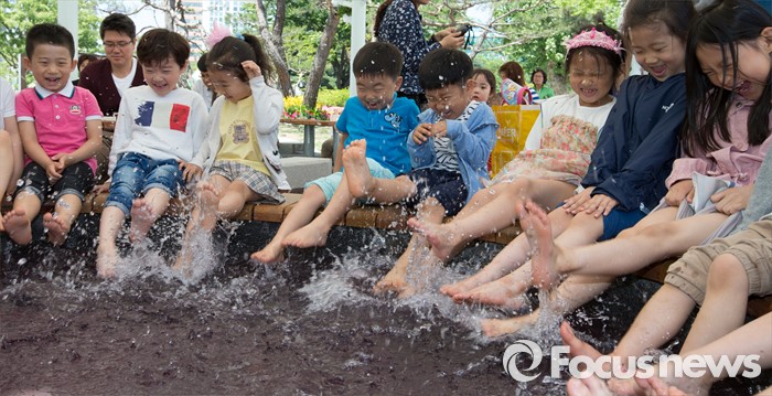 (대전=포커스뉴스) 유성온천문화축제를 하루 앞둔 12일 오전 대전 유성구 유성온천문화공원 족욕장을 찾은 어린이들이 족욕을 즐기고 있다. 유성온천문화축제는 13일부터 15일까지 열리며 국내 최초로 한방족욕카페를 개장해 태양인과 태음인, 소양인, 소음인 사상체질별 맞춤 족욕장을 운영한다.