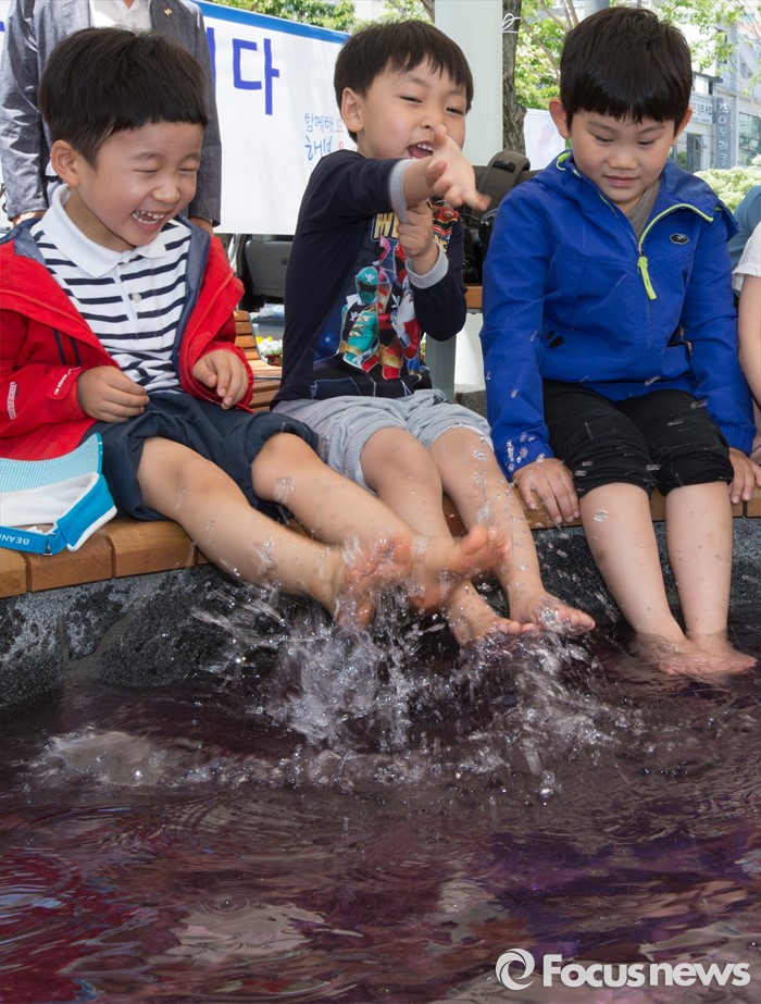 (대전=포커스뉴스) 유성온천문화축제를 하루 앞둔 12일 오전 대전 유성구 유성온천문화공원 족욕장을 찾은 어린이들이 족욕을 즐기고 있다. 유성온천문화축제는 13일부터 15일까지 열리며 국내 최초로 한방족욕카페를 개장해 태양인과 태음인, 소양인, 소음인 사상체질별 맞춤 족욕장을 운영한다.