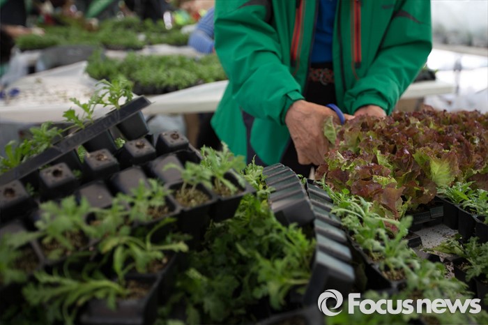(서울=포커스뉴스) 12일 오후 서울시청 광장에서 열린 채소 모종 나눔행사에서 관계자가 채소 모종을 다듬고 있다.