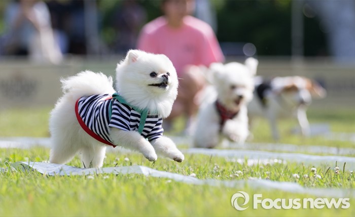 (서울=포커스뉴스) 12일 오후 서울 광진구 건국대학교 잔디광장에서 수의과대학 주최로 열린 '반려견과 함께하는 축제, 반함'에서 반려견들이 주인을 향해 달리고 있다.