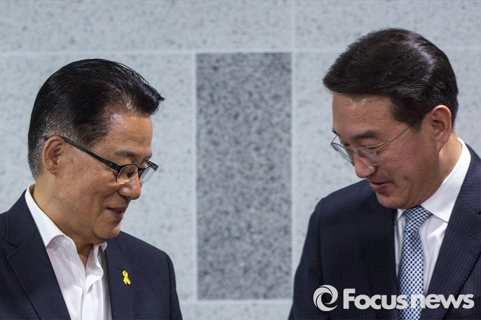 (서울=포커스뉴스) 박근혜 대통령과 3당 원내대표의 회담을 앞두고 현기환(오른쪽) 청와대 정무수석이 12일 오후 서울 여의도 국회의원회관에서 박지원 국민의당 원내대표와 면담에 앞서 인사하고 있다.