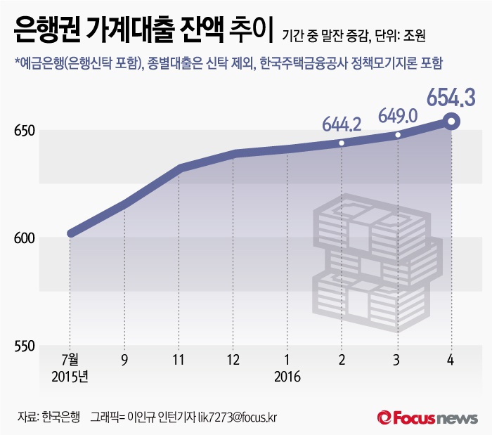 ( ☞ 가계빚 브레이크는 없나…4월 대출증가폭 5조원↑ - 기사 바로가기)