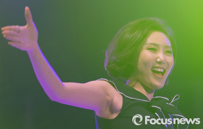 (서울=포커스뉴스) 12일 오후 서울 광진구 건국대학교 대운동장에서 열린 '2016 건국대학교 대동제'에서 걸그룹 마마무 멤버 화사가 무대를 선보이고 있다.