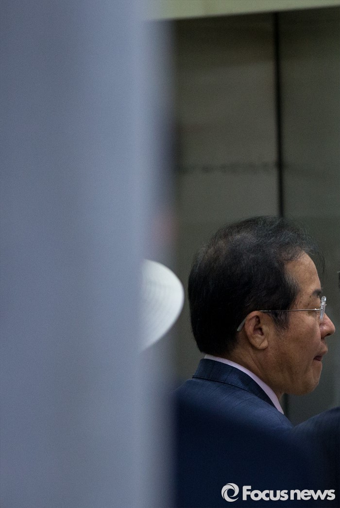 (서울=포커스뉴스) '성완종 리스트'로 논란이 된 홍준표 경남도지사가 정치자금법 위반 혐의에 대한 속행공판에 출석하기 위해 13일 오전 서울중앙지법으로 들어서고 있다.