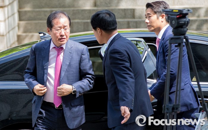 (서울=포커스뉴스) '성완종 리스트'로 논란이 된 홍준표 경남도지사가 정치자금법 위반 혐의에 대한 속행공판에 출석하기 위해 13일 오전 서울중앙지법으로 들어서고 있다.