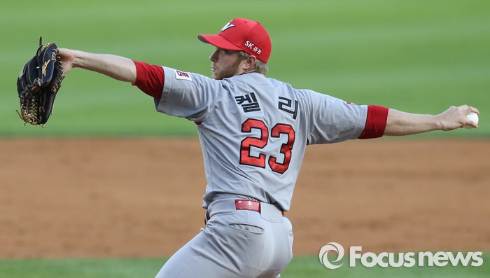 (서울=포커스뉴스) 13일 서울 잠실구장에서 열린 2016 프로야구 SK-LG 경기 3회말 SK 선발투수 켈리가 체인지업을 던지고 있다.