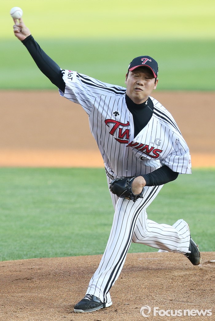 (서울=포커스뉴스) 13일 서울 잠실구장에서 열린 2016 프로야구 SK-LG 경기에서 1회초 LG 선발투수 류제국이 투구하고 있다.