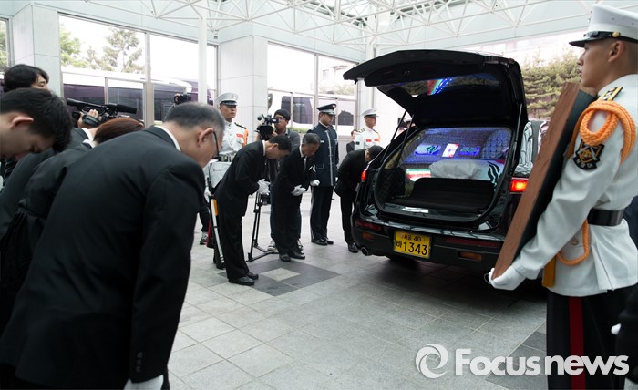 (서울=포커스뉴스) 14일 오전 서울 송파구 아산병원 장례식장에서 강영훈 전 국무총리의 발인식이 엄수되고 있다.