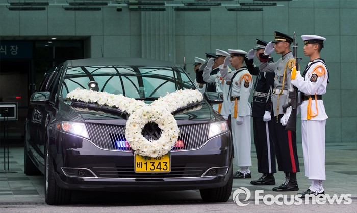 (서울=포커스뉴스) 14일 오전 서울 송파구 아산병원 장례식장에서 강영훈 전 국무총리의 발인식이 엄수되고 있다.