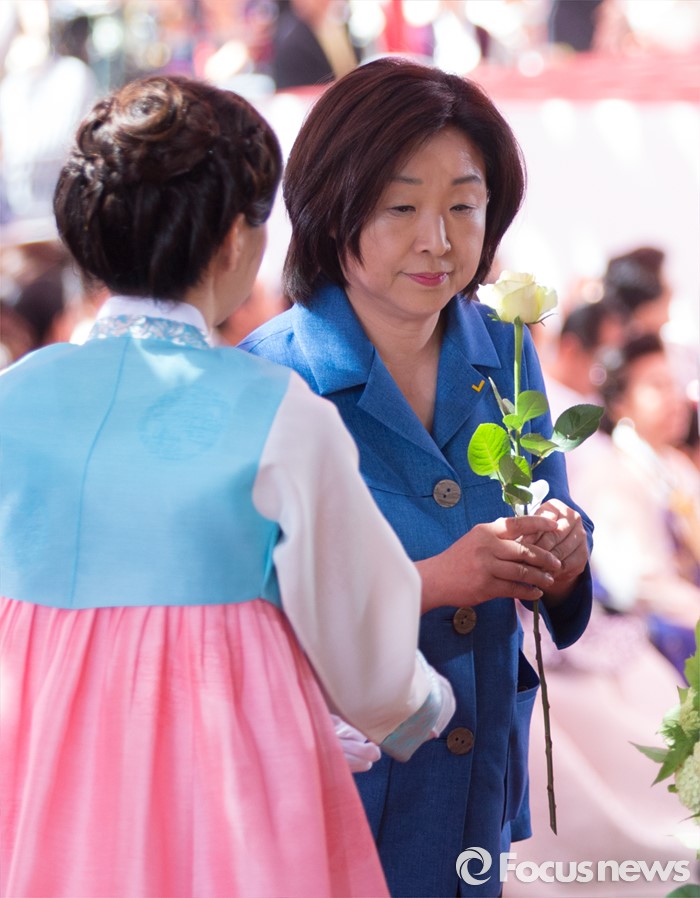 (서울=포커스뉴스) 14일 오전 서울 종로구 조계사 대웅전에서 열린 불기 2560년 부처님 오신날 봉축 법요식에서 심상정 정의당 대표가 헌화하고 있다.