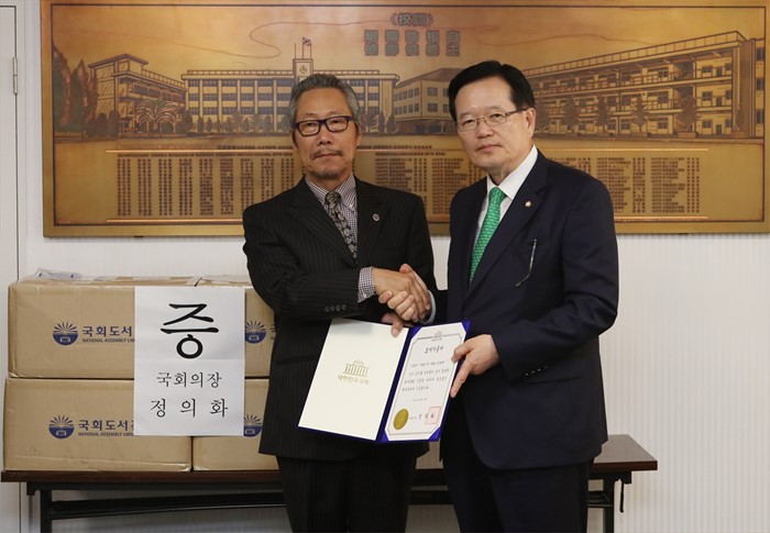 | △ 일본 오사카 건국학교 도서 기증한 정의화 의장 |