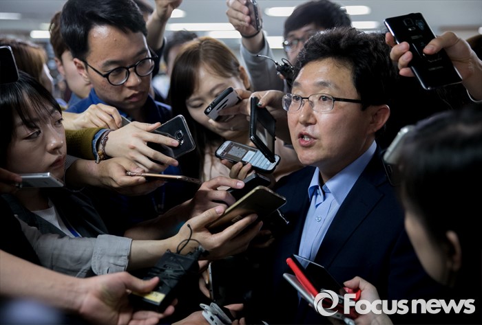 | △ 취재진 질문 답하는 김용태 |
