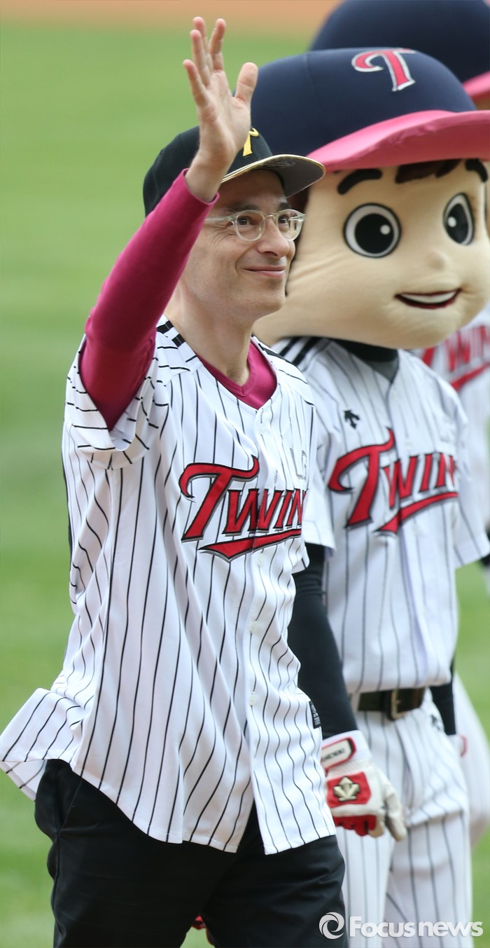 (서울=포커스뉴스) 8일 서울 잠실구장에서 열린 2016 프로야구 SK-LG 경기에 앞서 프랑스 소설가 베르나르 베르베르가 시구후 관중에게 손을 흔들며 퇴장하고 있다.