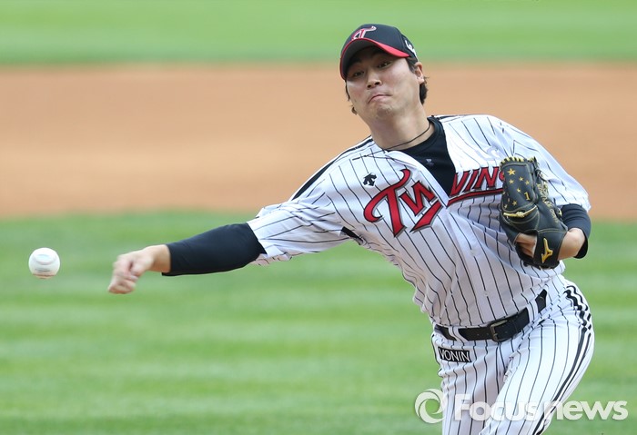 (서울=포커스뉴스) 15일 서울 잠실구장에서 열린 2016 프로야구 SK-LG 경기에서 1회초 LG 선발투수 우규민이 투구하고 있다.