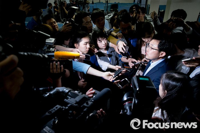 (서울=포커스뉴스) 새누리당 혁신위원장으로 임명된 김용태 의원이 15일 오후 서울 여의도 당사에서 기자회견을 마친 뒤 취재진 질문에 답하고 있다.