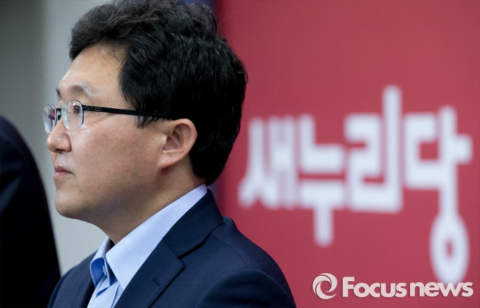 (서울=포커스뉴스) 새누리당 혁신위원장으로 임명된 김용태 의원이 15일 오후 서울 여의도 당사에서 정진석 원내대표와 함께 기자회견을 하고 있다.
