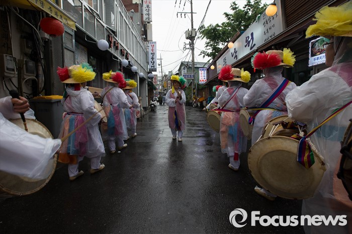 (서울=포커스뉴스) 세종대왕 탄신 619주년인 15일 오후 서울 종로구 통인시장 일대에서 세종대왕 어가행렬이 재현되고 있다.