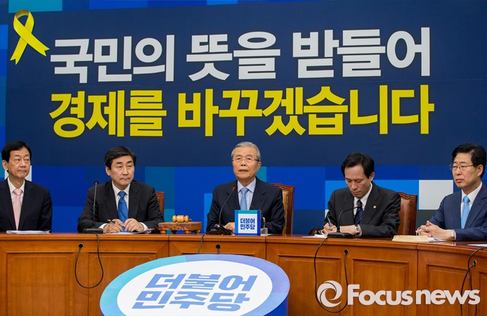 (서울=포커스뉴스) 16일 오전 서울 여의도 국회에서 열린 더불어민주당 제34차 비상대책위원회의에 참석한 김종인(가운데) 비대위원회 대표가 모두발언 하고 있다.