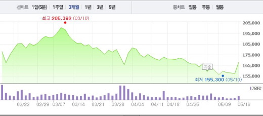 이번 계약은 수출입은행이 서비스산업에 지분을 투자한 최초 사례다. 티슈진은 퇴행성관절염 치료신약인 인보사(Invossa)를 개발하고 있다.주가흐름<사진출처=네이버 캡쳐>