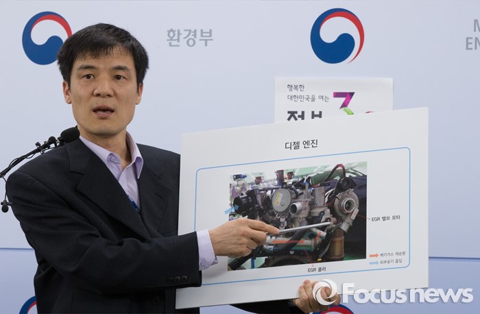 (세종=포커스뉴스) 홍동곤 환경부 교통환경과장이 16일 오전 세종시 정부세종청사 환경부 기자실에서 브리핑을 열고 지난해 12월부터 지난 4월까지 150일 동안 국내에서 판매된 경유자동차 20종을 조사한 결과 한국닛산 캐시카이 차량의 배기가스를 불법 조작하는 임의설정 한 것으로 판단된다고 밝히고 있다. 환경부는 한국닛산에 3억3000만원의 과징금 부과와 함께 판매정지 및 리콜(814대) 명령을 내릴 계획이다.