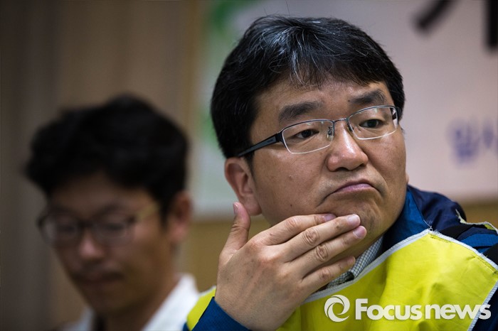 (서울=포커스뉴스) 16일 오전 서울 서초구 민변 대회의실에서 열린 가습기살균제피해자 공동소송대리인단의 집단소송 소장 접수 기자회견에서 피해자 대표가 취재진의 질문을 경청하고 있다.