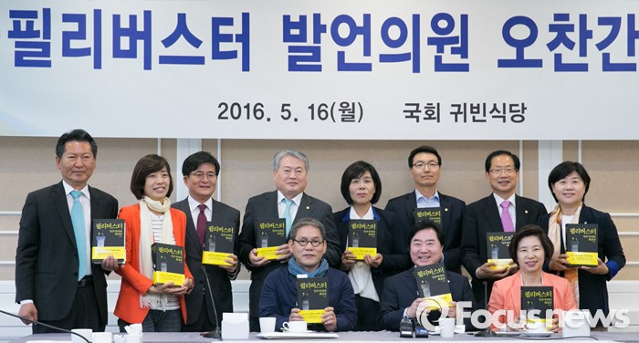 (서울=포커스뉴스) 이석현 국회 부의장과 필리버스터 발언 의원들이 16일 오후 서울 여의도 국회 귀빈식당에서 열린 오찬 간담회에 참석해 의원들의 발언을 책으로 엮은 '필리버스터 : 민주주의 최전선' 도서를 들고 취재진을 향해 포즈를 취하고 있다.