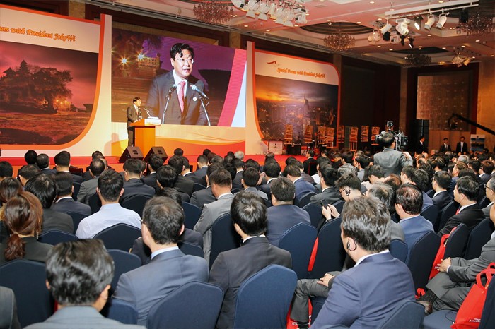 (서울=포커스뉴스) 주형환 산업통상자원부 장관이 16일 오전서울 중구 소공동 롯데호텔 크리스탈볼룸에서 조코 위도도(Joko Widodo) 인도네시아 대통령과 한-인니 양국 정부 및 기업인 등 관계자 400여명이 참석한 가운데 열린 한-인도네시아 비즈니스 포럼에 참석해 축사를 하고 있다. <사진제공=산업통상자원부>