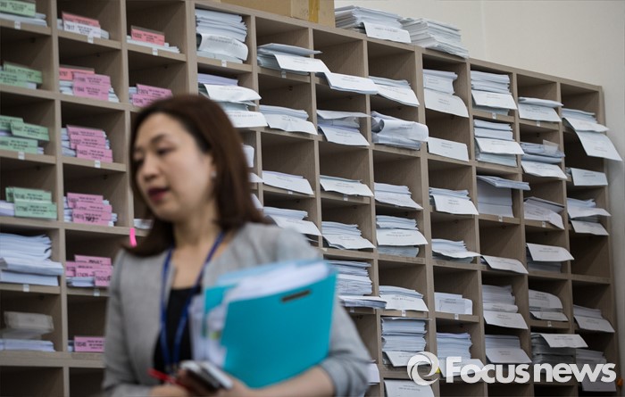 (서울=포커스뉴스) 16일 오후 서울 여의도 국회에서 열린 법제사법위원회에 법안심사1소위에 처리해야 할 법률안이 쌓여 있다.