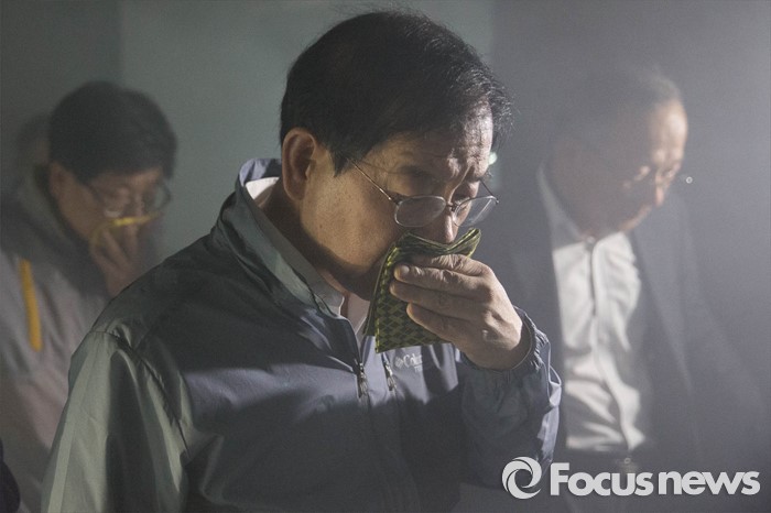 (서울=포커스뉴스) 16일 오후 서울 송파구 잠실역 선로에서 박원순 서울시장이 '재난대응 안전한국훈련'에 참가해 대피 훈련을 하고 있다.