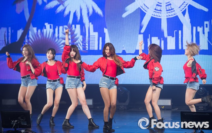 (서울=포커스뉴스) 16일 오후 서울 광진구 예스24 라이브홀에서 열린 걸그룹 AOA 미니앨범 'Good Luck' 발표 쇼케이스에 멤버들이 무대를 선보이고 있다.