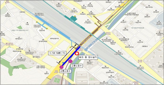 서부도로사업소는 "훈련 당일 운행하는 운전자는 서행이나 우회해 줄 것을 당부드린다"고 말했다.지하차도 차량통제 위치도 <사진제공=서울시청><표제공=서울시청>
