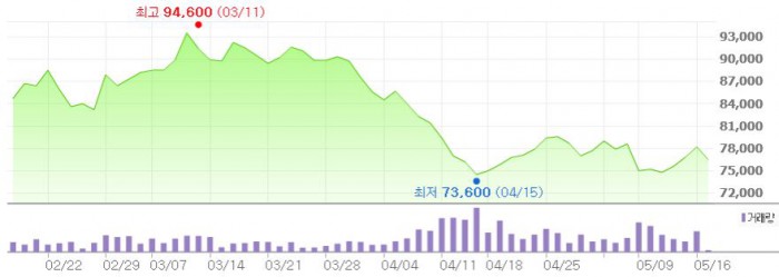 이에 따라 신세계인터내셔날에 대한 투자의견을 기존 '매수'에서 '중립'으로, 목표주가를 종전 10만원에서 8만7000원으로 하향 조정했다.최근 3개월간 신세계인터내셔날 주가 추이 <그래픽출처=네이버>