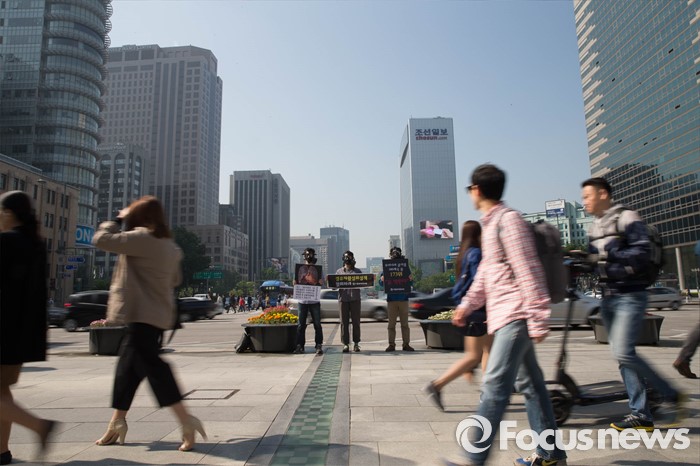 | △ 서울환경연합, 광화문 광장서 방독면 퍼포먼스 |