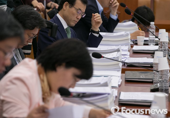 (서울=포커스뉴스) 17일 오전 서울 여의도 국회에서 열린 법제사법위원회 전체회의에 참석한 의원들이 법안 관련 자료를 살펴보고 있다.
