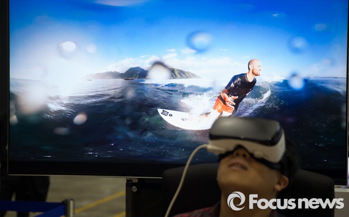 (서울=포커스뉴스) 17일 오전 서울 강남구 코엑스에서 열린 '월드 IT쇼 2016' 의 삼성전자 부스를 찾은 한 관람객이 VR을 이용한 3D영상을 체험하고 있다.