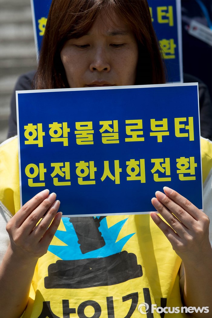 (서울=포커스뉴스) 17일 오전 서울 종로구 세종문화회관 앞에서 환경 및 시민단체와 가습기 살균제 피해자들이 가습기 살균제 사고에 대한 근본적 대책마련을 촉구하며 기자회견을 하고 있다.
