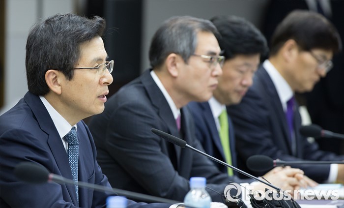(세종=포커스뉴스) 황교안(왼쪽) 국무총리가 17일 오후 세종시 정부세종청사 1동 대회의실에서 서울-세종 영상회의로 열린 국가정책조정회의에 참석해 회의를 주재하고 있다.