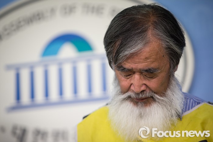 (서울=포커스뉴스) 가습기살균제 피해자와 가족모임(가피모)이 17일 오후 서울 여의도 국회 정론관에서 가습기 살균제 피해 대책마련 4당 원내대표 면담요구 기자회견을 하고있는 가운데 한 피해자 가족이 슬픔에 잠겨 있다.