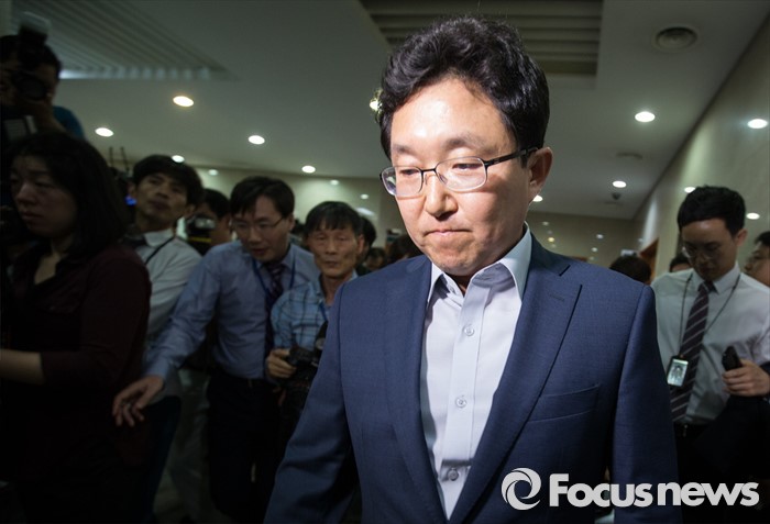 (서울=포커스뉴스) 김용태 새누리당 의원이 17일 오후 서울 여의도 정론관에서 혁신위원장 사퇴 의사를 밝힌 후 국회 기자회견장을 떠나고 있다.